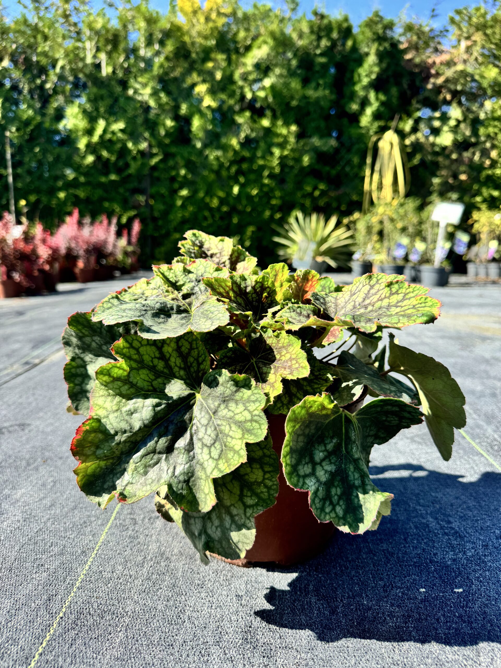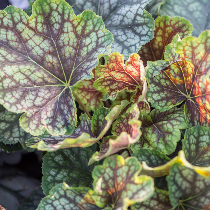 To wyjątkowo dekoracyjna odmiana żurawki, ceniona za oryginalne i intensywnie wybarwione liście. Jej ulistnienie przyciąga uwagę wyjątkową kombinacją kolorów – odcieniami purpury, różu, zieleni oraz delikatnych srebrzystych lub marmurkowych przebarwień, które zmieniają się w zależności od pory roku i warunków świetlnych. Liście są lekko pofalowane, osadzone na krótkich ogonkach, tworząc gęste, zwarte kępy.
