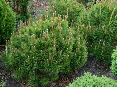 to bardzo dekoracyjna, karłowa odmiana sosny kosodrzewiny, charakteryzująca się zwartym, poduszkowatym pokrojem i powolnym wzrostem. W formie nisko szczepionej (zwykle 20–40 cm nad ziemią) przybiera postać niskiego, kompaktowego drzewka o gęstej, kulistej koronie.