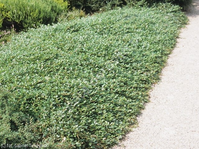 to bardzo cenna, zimozielona roślina okrywowa o silnym, płożącym wzroście. Tworzy gęste dywany pędów, które szybko pokrywają powierzchnię gleby, co czyni ją doskonałym wyborem do zadarniania skarp, rabat, nasypów i trudnych stanowisk. Roślina osiąga ok. 20–30 cm wysokości, ale jej pędy mogą się rozrastać nawet do 1,5–2 metrów długości, zakorzeniając się przy kontakcie z ziemią. Liście są błyszczące, ciemnozielone, skórzaste, utrzymują się na roślinie przez całą zimę, co sprawia, że irga ‘Major’ pozostaje dekoracyjna przez cały rok.