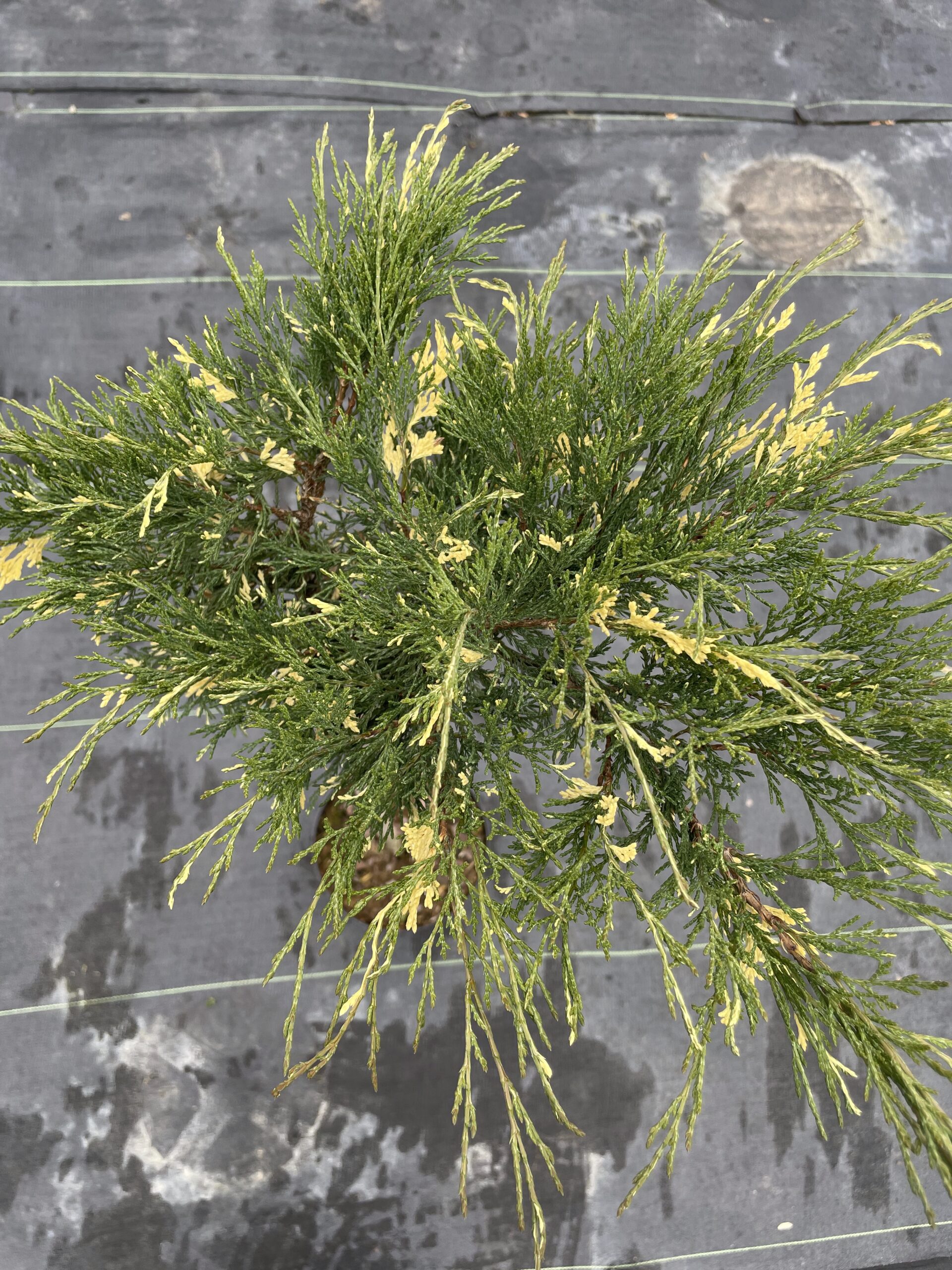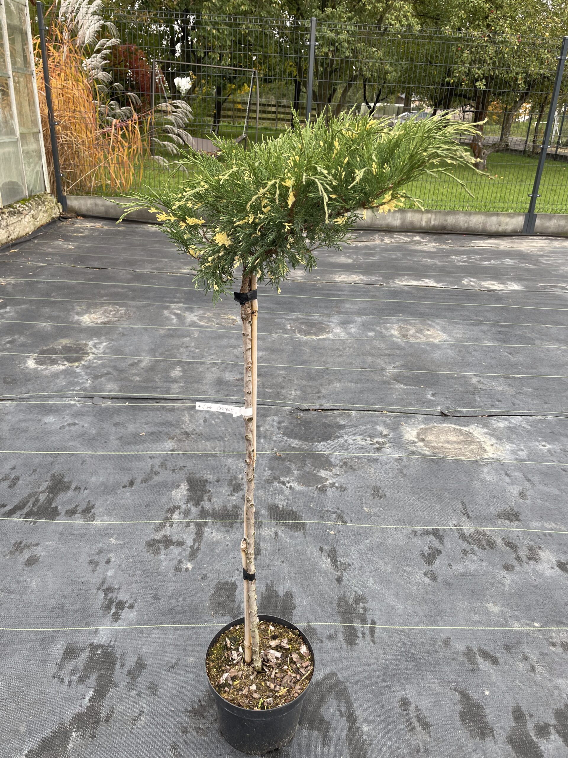szczepiony na pniu to ozdobna forma jałowca chińskiego, wyróżniająca się nietypowym, dwubarwnym ulistnieniem oraz zwartym, lekko nieregularnym pokrojem. Dzięki szczepieniu na pniu, roślina tworzy efektowne miniaturowe drzewko z gęstą, nieregularną koroną. Gałązki mają barwę zieloną z nieregularnymi, kremowobiałymi przebarwieniami, co nadaje roślinie wyjątkowego uroku przez cały rok.